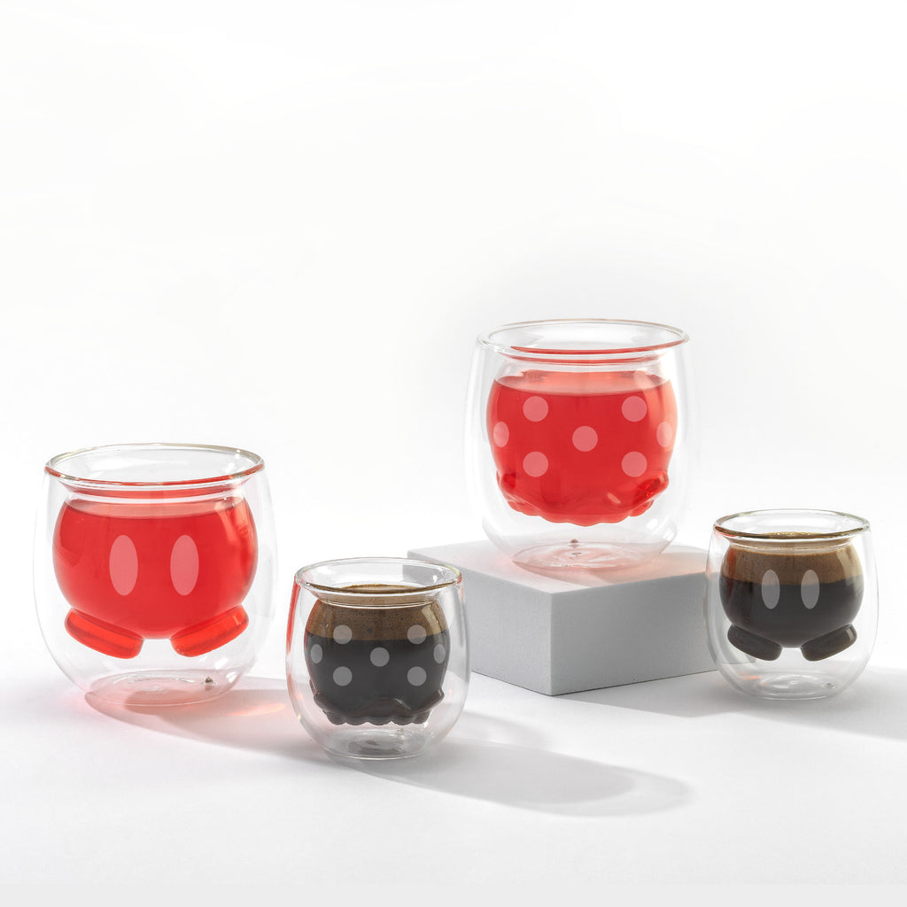 Dress up your drinks in Disney magic! This double walled glass mug set, featuring the iconic Mickey Mouse and Minnie Mouse, is a delightful addition to any kitchen. Mickey's iconic pants and Minnie's signature skirt adorn the mugs, adding a touch of whimsy to your morning cup of joe or afternoon tea. Crafted from high-quality lead free glass, their double walled design keeps drinks at just the right temperature while the glass remains comfortable to touch. Choose from two sizes to find the perfect fit for your favorite beverages, and add a touch of Disney magic to every sip!