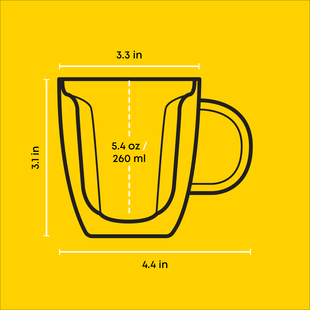 - Double-wall insulated glasses, perfect for hot and cold drinks