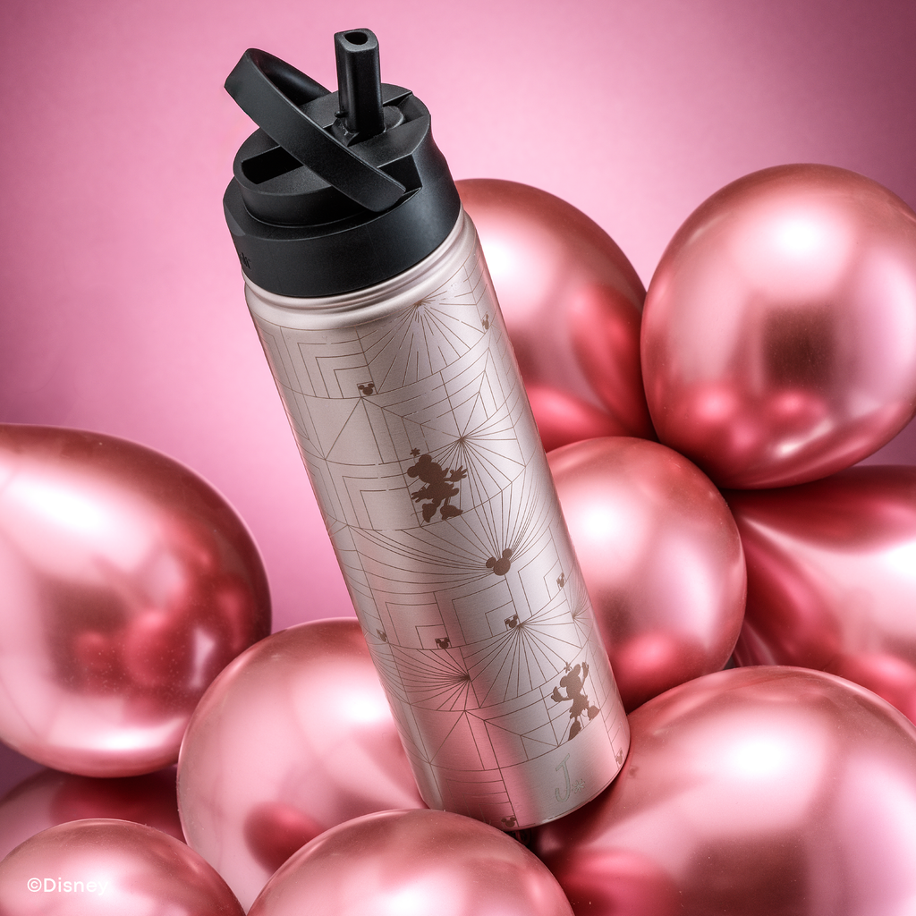 A little playful, a little bold, a little pink. Featuring an art deco-inspired take on classic Minnie, this water bottle keeps your coffee warm on dreamy morning strolls and your iced tea cold as you take on the afternoon. Whether you're heading to class, the office, or your favorite café, it’s a reminder to sip slow, embrace the moment, and carry a little joy with you wherever you go.
