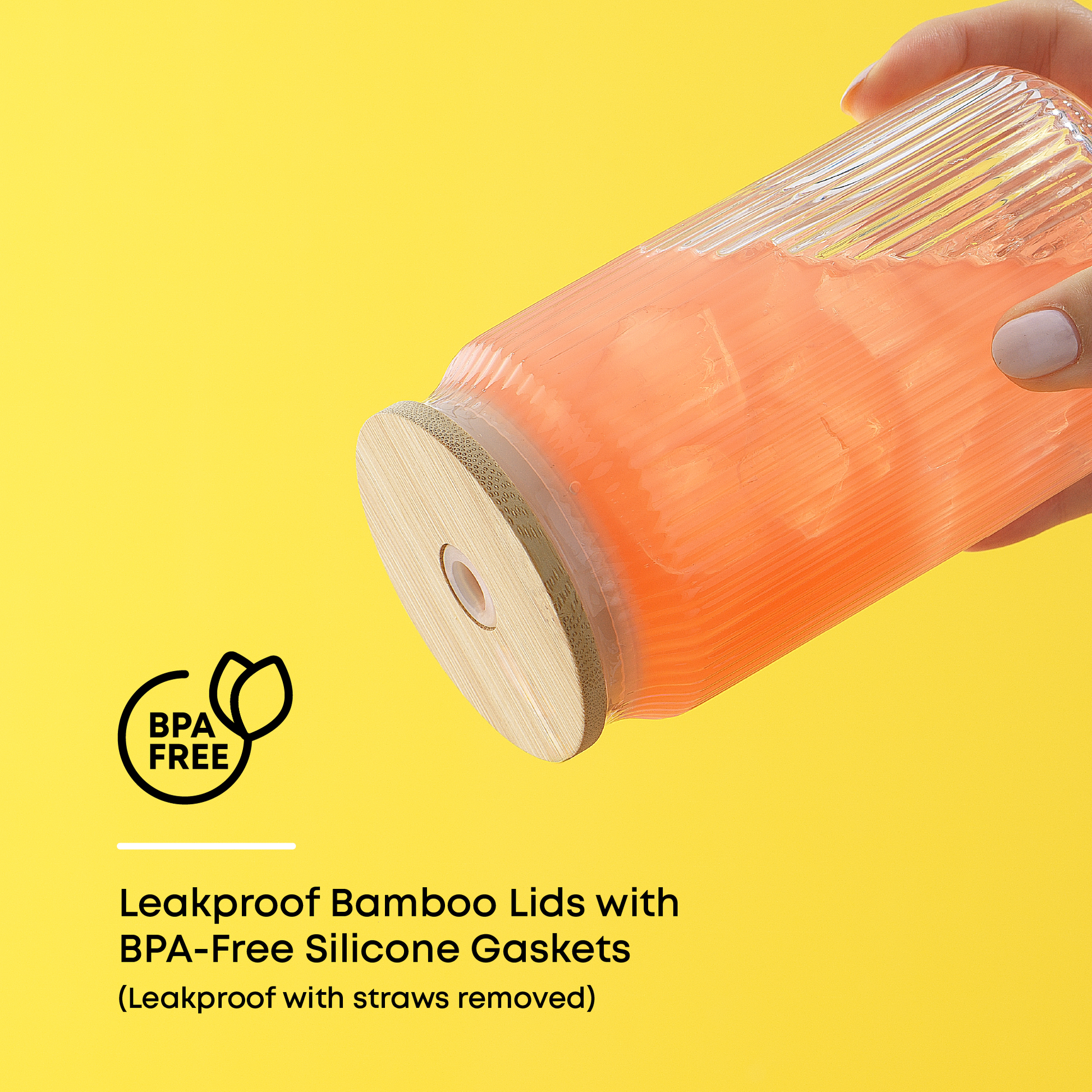 Fluted Glass Tumblers with Bamboo Lids and Straws