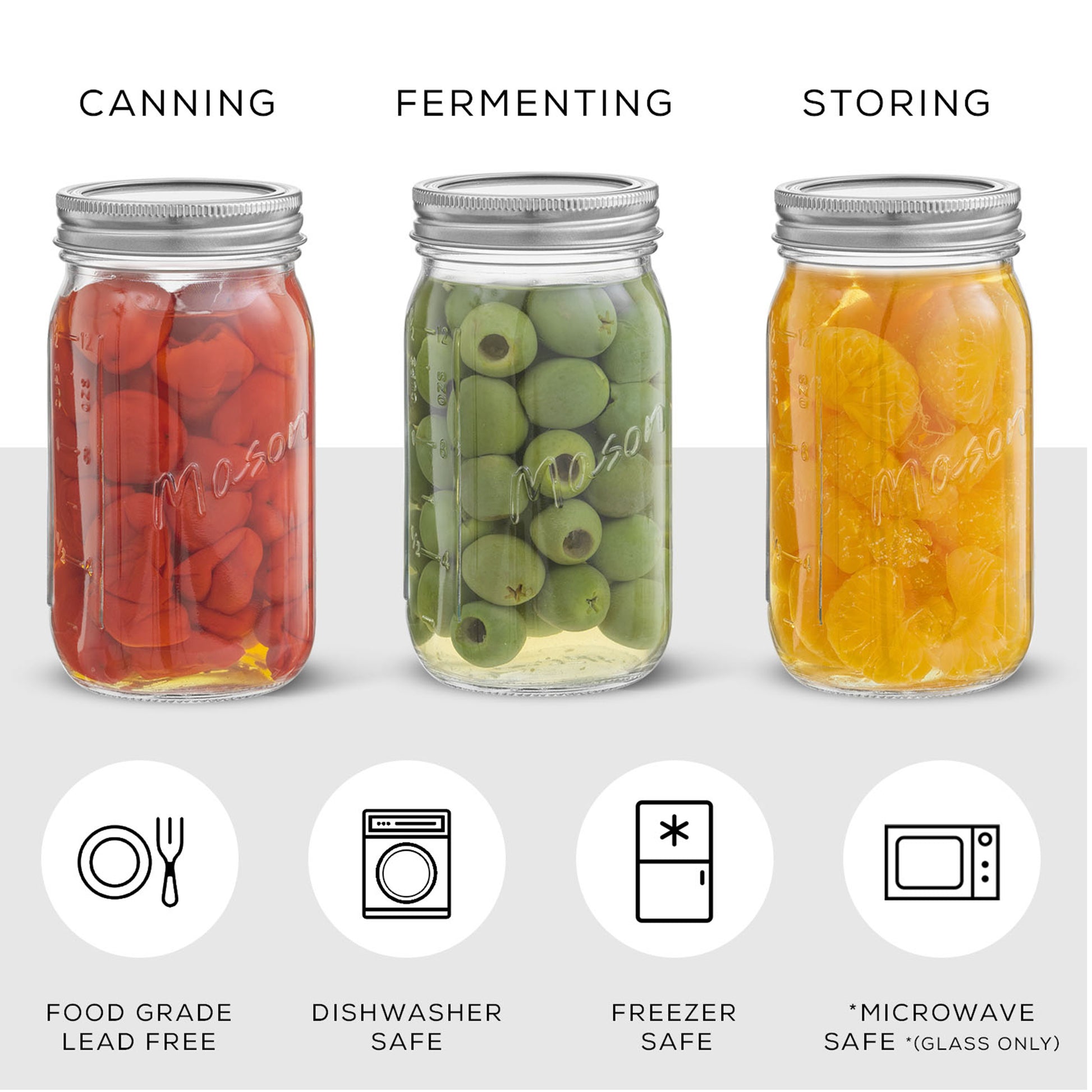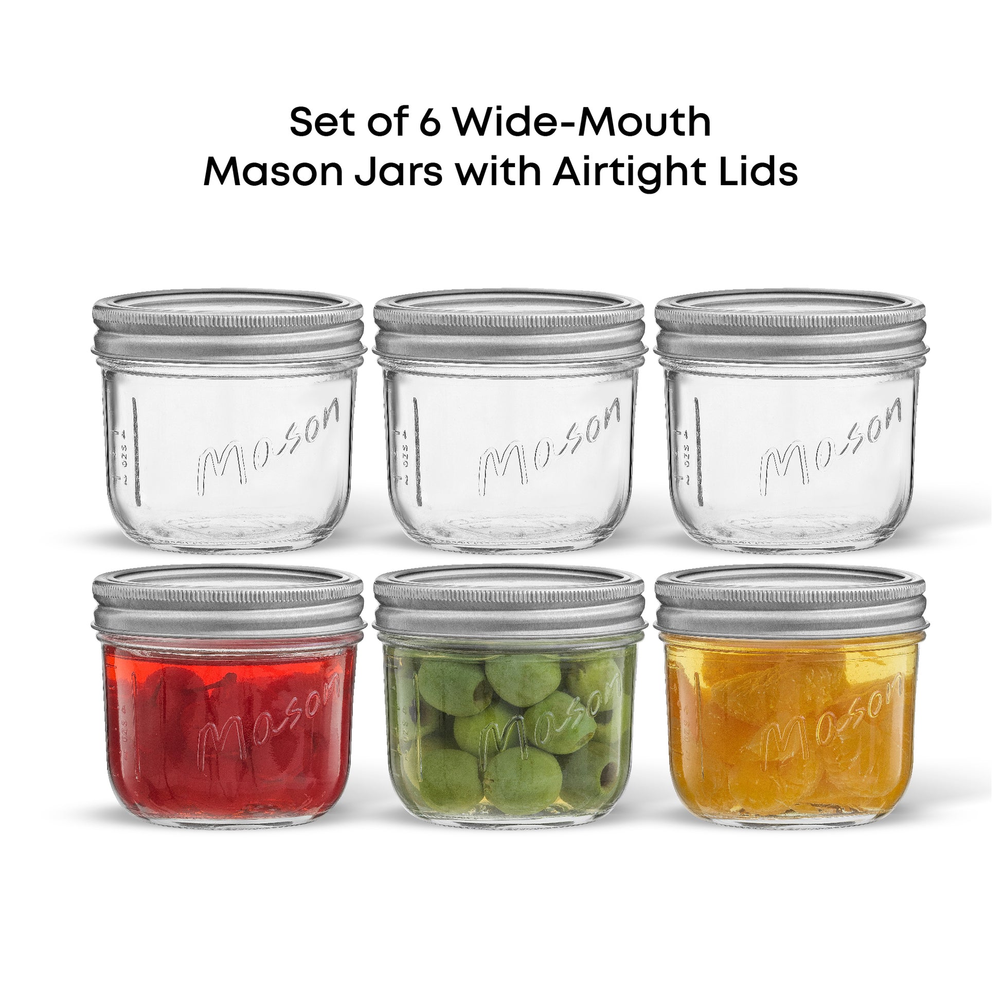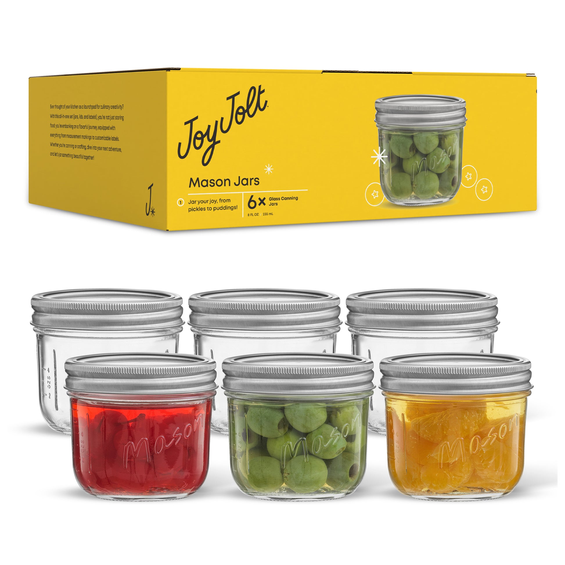Mason Jars with Airtight Lids, Labels and Measures