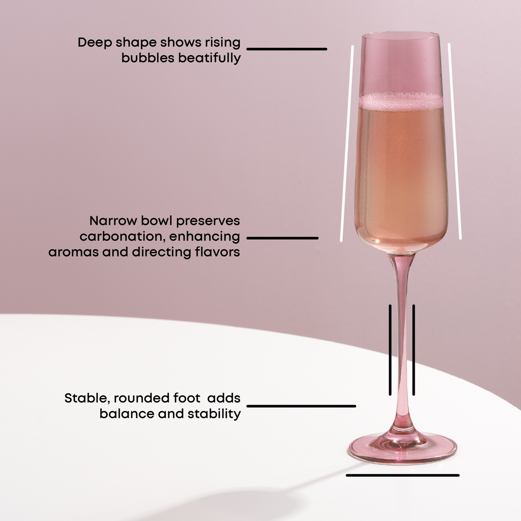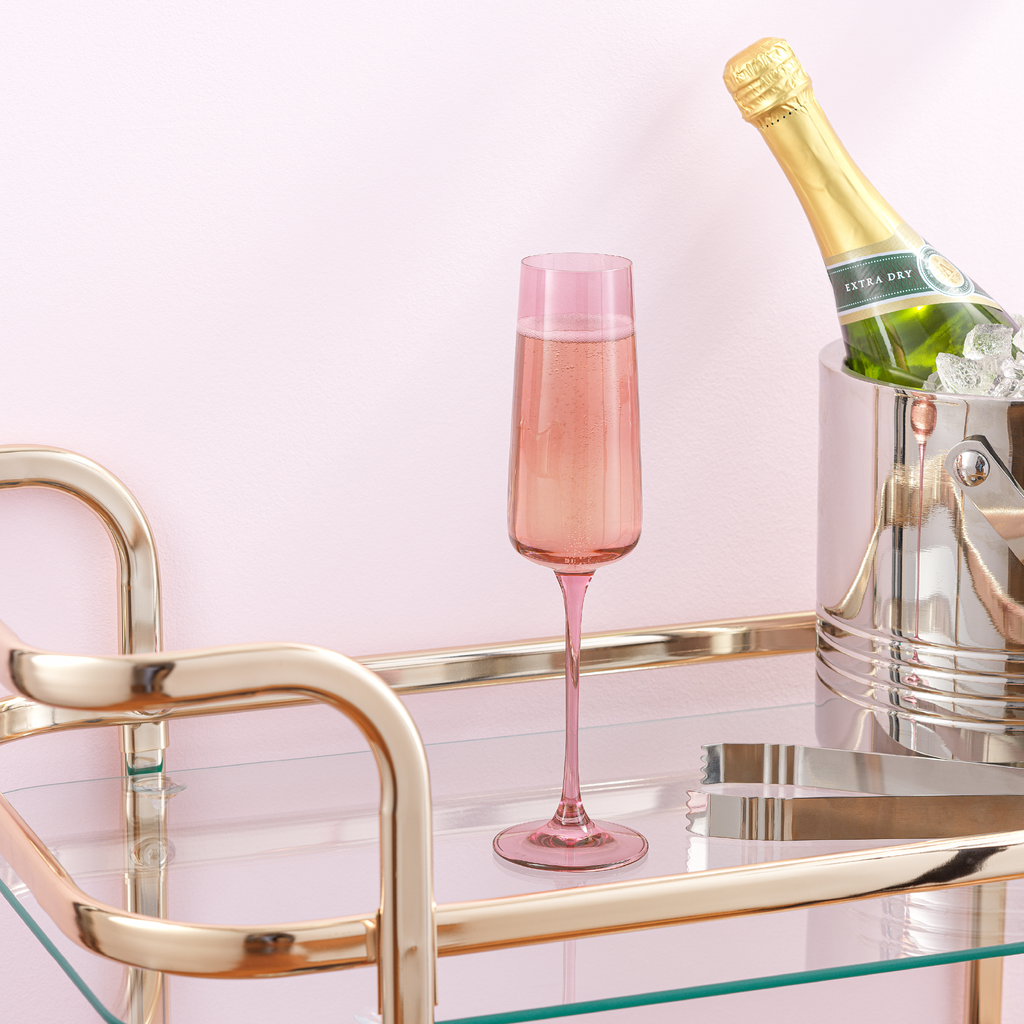 Cue the clink. These sleek champagne flutes bring a sharp silhouette and serious sparkle to everything from brunch Bellinis to midnight Prosecco.